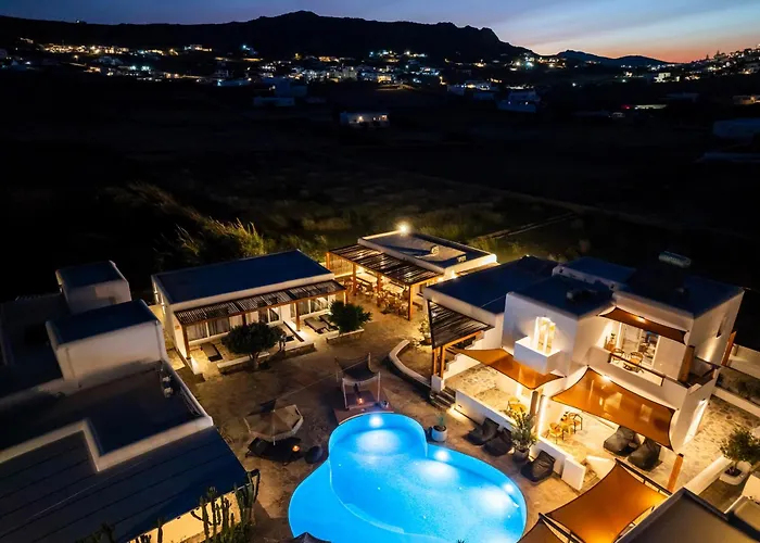 Det bekväma hotellet Olive Mykonos Villas Ano Mera, som har ett arkeologiskt museum, ligger ungefär 10 minuter med bil från Kalafatis strand. Gästerna kan simma i en pool på detta 4-stjärniga hotell som också erbjuder utsikt över poolen.